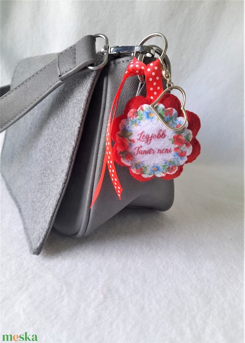 Kulcstartó, táskadísz Tanár néninek pedagógusnapra. ( virág )