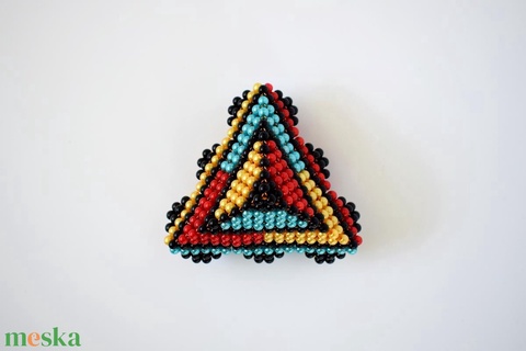 Piros-sárga-türkizkék „lépcsős piramis” fekete ráccsal