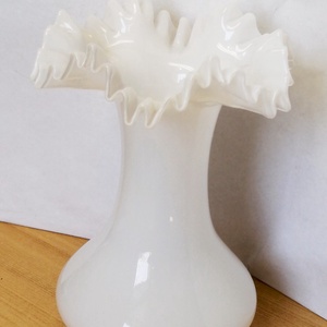 Tejüveg fodros peremezésű Biedermeier Bohemia váza 1960-s évek Csehország