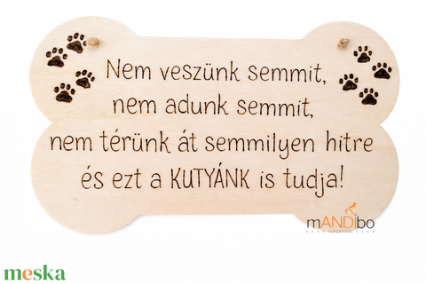 Vicces harapós kutyára figyelmeztető csont formájú kopogtató - pirogravírozott képecske