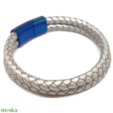 Metál ezüst-kék női statement karkötő nemesacél mágneskapoccsal, női karkötő