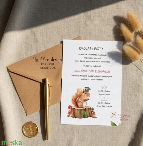 Emeld ki az ovis vagy bölcsis ballagás ünnepét ezzel az elegáns, egyedi mókusos ballagási meghívóval! Tökéletes választás, ha szeretnétek stílusosan meghívni szeretteiteket az emlékezetes eseményre.