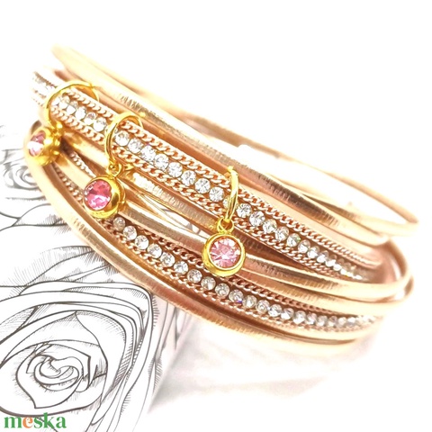 Ragyogó pezsgő színű női karkötő cirkon köves nemesacél charm díszekkel, mágnescsattal