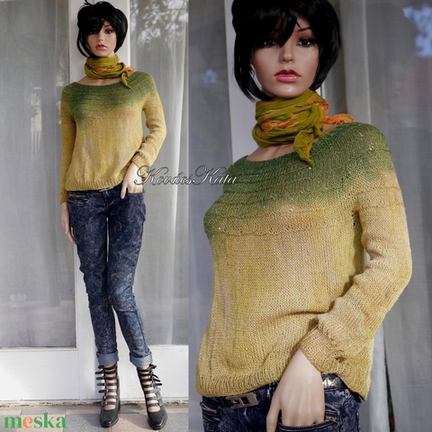 FATIME DYED - egyedi festésű kézzel kötött selyem-merinó artsy pulóver / mustár