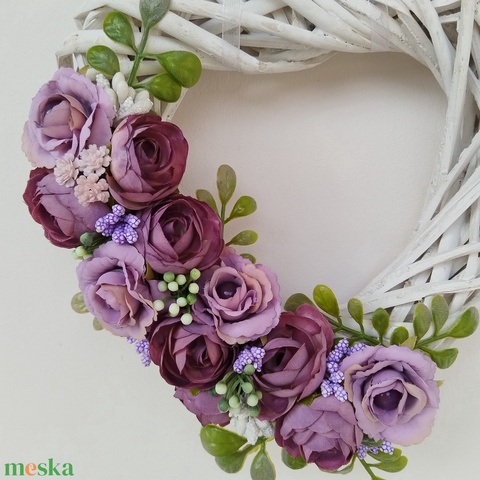 Szív alakú kopogtató lilás-mályvás árnyalatokkal