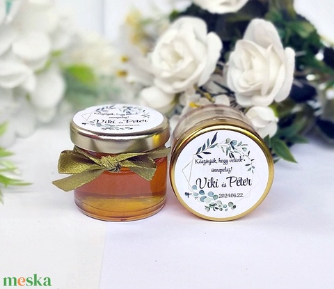 Esküvői gyetyás köszönet mini mézes köszönő ajándék, méhviasz gyertyás köszönetajándék, esküvői köszönet ajándék