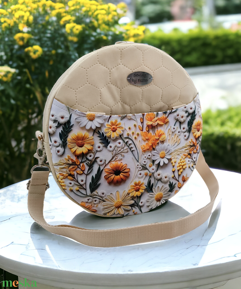3D hatású virágos 3in1 Kör táska - kézitáska / válltáska / hátizsák - Bézs