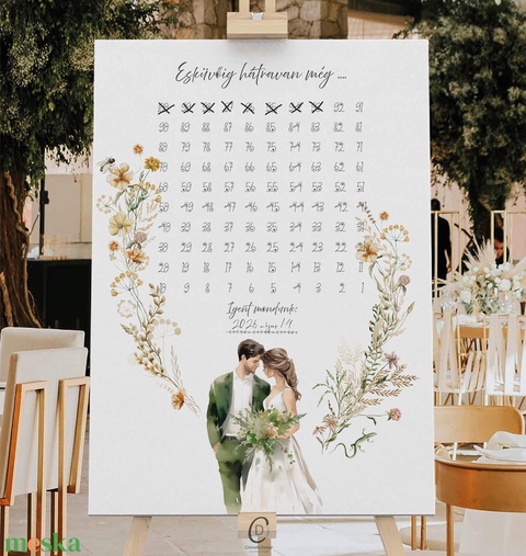 Esküvői visszaszámláló poszter, tábla, falikép, dekoráció