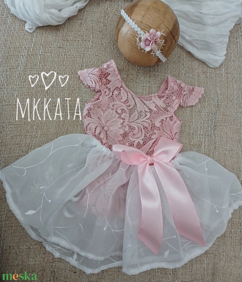 Csipke body, szoknya és fejpánt szett Újszülött fotózáshoz