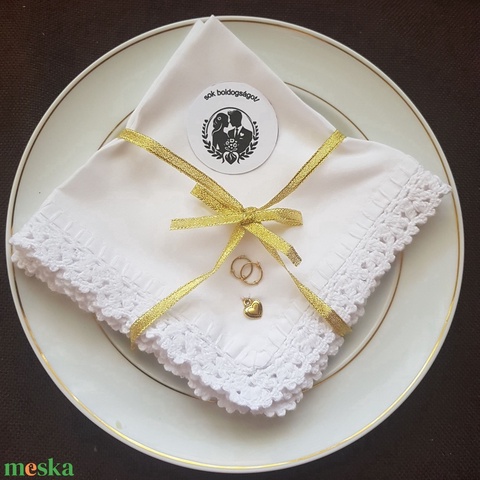 Esküvői szalvéta/jegykendő/zsebkendő arany