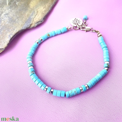 sterling ezüst kapocs, türkiz gyöngyök, hematit gyöngyök, orvosi fém charm