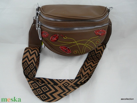Műbőr válltáska, egyedi, kézzel festett, egyedi pipacs mintával.