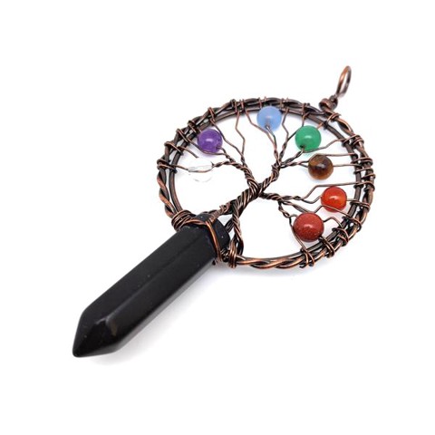Életfa bronz drót csúcs obszidián medál 5x9cm