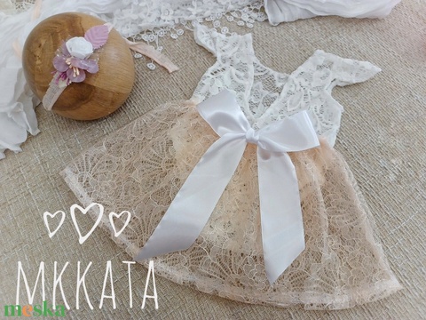Csipke szoknya, csipke body és fejpánt szett Újszülött fotózáshoz