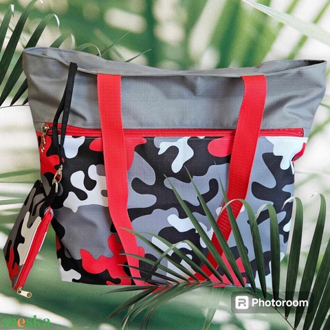 Összehajtható vízálló strandtáska/fitnesz táska/shopper rögzíthető pénztárcával