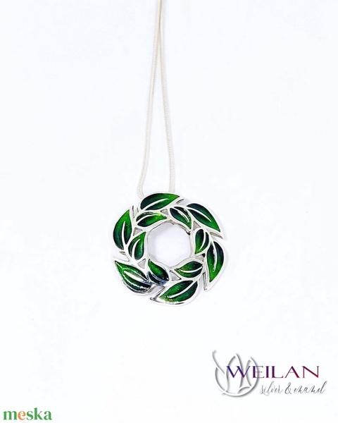 Leaf - Laurus / Babér ezüst tűzzománc medál, zöld