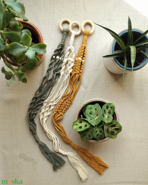 Makramé virágtartók gyöngyökkel, több színben