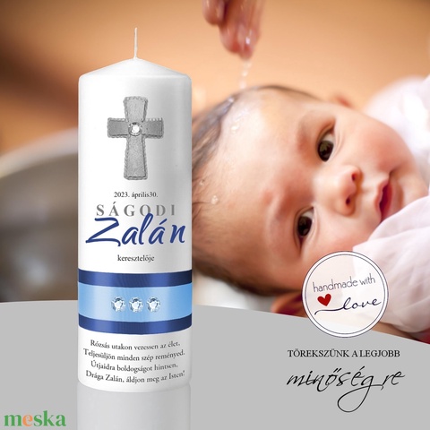 A keresztelő gyertya nem csak a keresztelő napján játszik fontos szerepet. Jelentős helye van a családban. Sok szülő minden évben meggyújtja gyermeke születésnapján vagy a keresztelő napján. Elkíséri a gyermeket az első áldozásig vagy a konfirmációig, gyakran azon túl is. Annál is fontosabb, hogy a keresztelő gyertya gyönyörűen legyen megtervezve. A keresztelő napjára szeretettel emlékezünk.