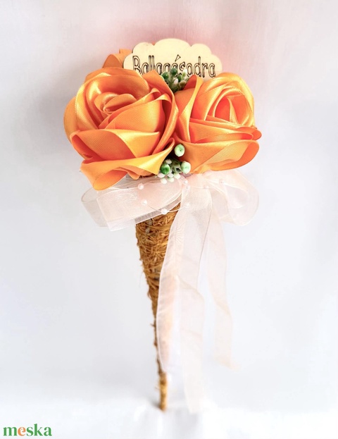 Narancssárga sizal tölcséres ballagási csokor