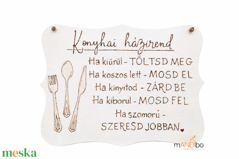 Konyhai házirend pirogravírozott kép - új háziasszonyoknak