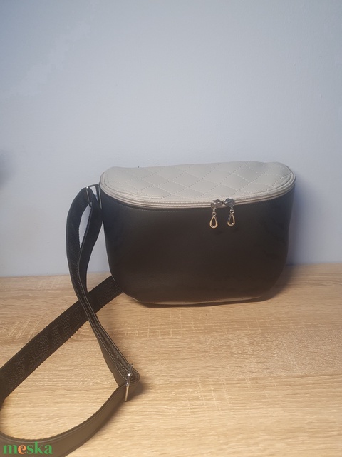Oldaltáska fekete-szürke steppelt