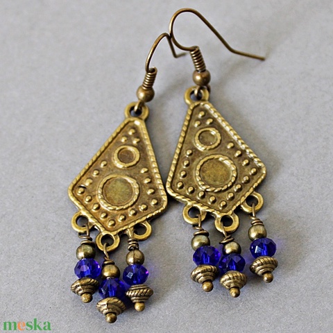 Bizánc - archaikus fülbevaló üveggyönggyel, kék üveggyöngy csillár fülbevaló