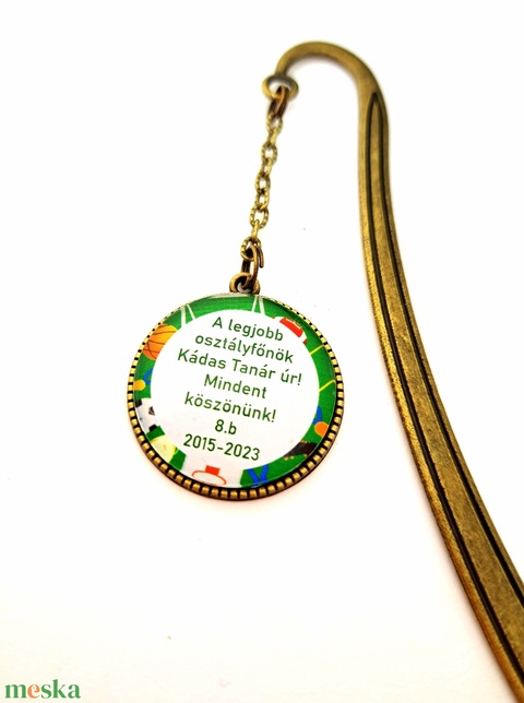 - Anyaga: könyvjelző alap, lánc, üveglencse, medál alap