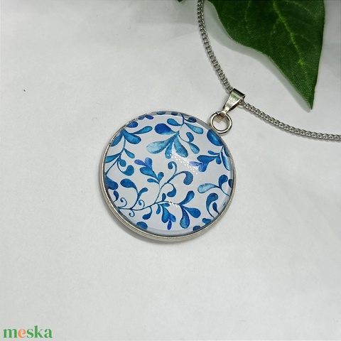 Inda mintás üveglencse medálos nemesacél nyaklánc