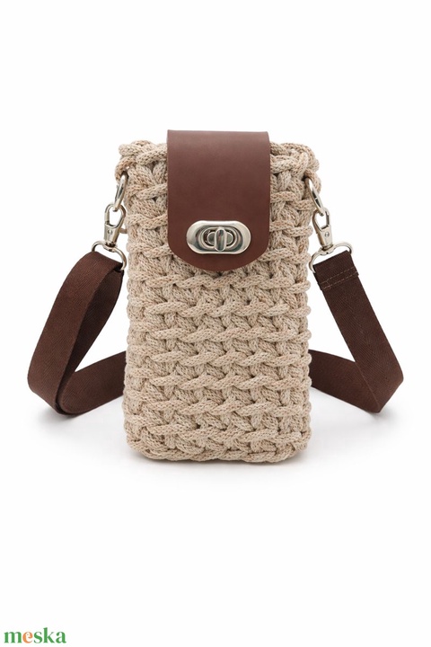 Horgolt válltáska, telefontáska, telefontartó, fesztiváltáska