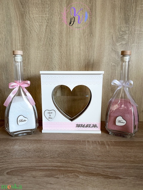 ESKÜVŐI HOMOKÖNTŐ SZETT RÓZSASZÍN-FEHÉR CSIPKÉS
