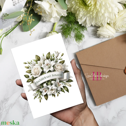 A szöveg tartalma és elrendezése módosítható a meghívón. Grafikai elemek a képen szereplő formában lesznek a kész termékeken.