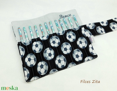 Focilabdás ceruzatekercs / focis feltekerhető tolltartó névhímzéssel