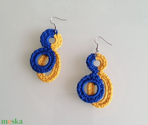 Kék és sárga színekben készült a fülbevaló.
