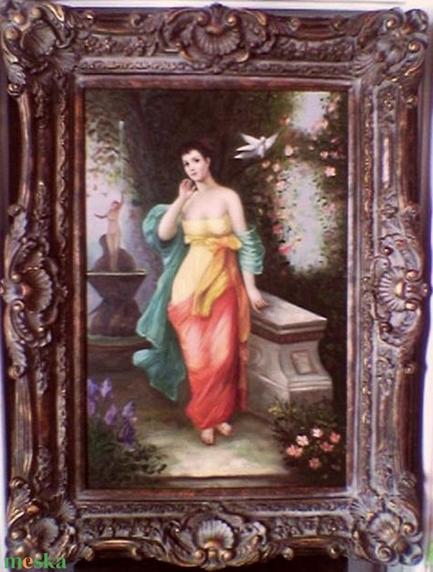 Retró barokk stílusú romantikus festmény. Latin szépség, mediterrán virágoskertben