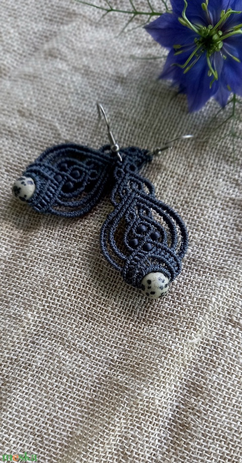- Anyaga: linhasita fonal, kásagyöngy, antiallergén (nemesacél)akasztó, dalmata jáspis kásagyöngy