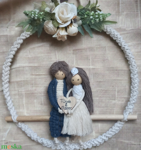 Makramé esküvői emlék – személyre szabható falidísz