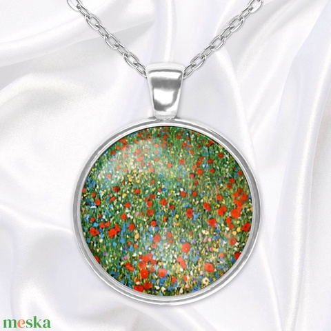 Pipacsos üveglencsés medál Klimt-festménnyel