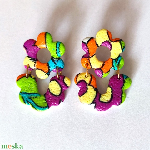 Színes, nagyon vidám, virág alakú virágmintás fülbevaló