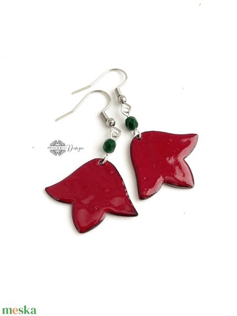 Bordó tulipán - tűzzománc fülbevaló