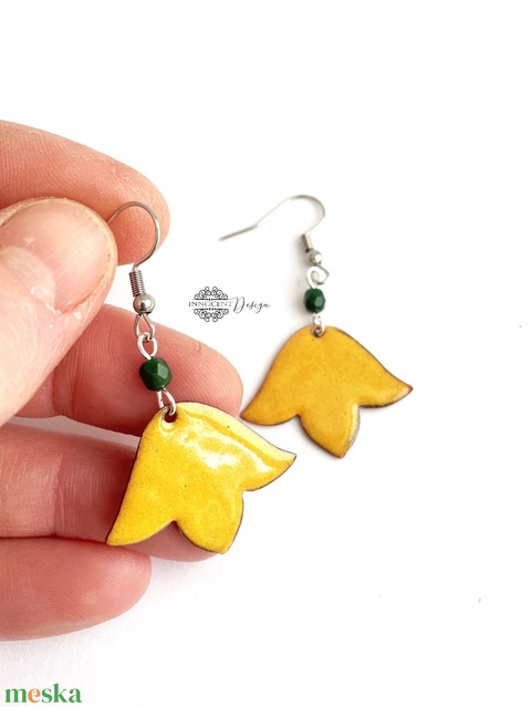 Sárga tulipán - tűzzománc fülbevaló