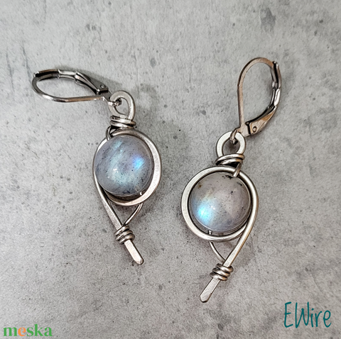 Orvosi fém lógós fülbevaló labradorit ásványgolyóval