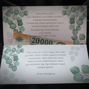 Egyedi Greenery pénzátadó zsebes boríték esküvőre