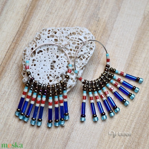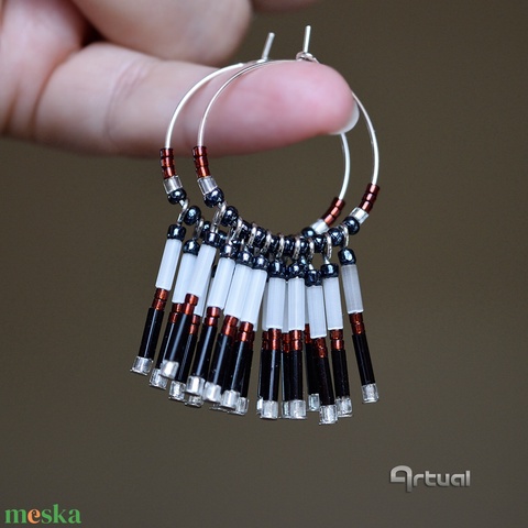 - Anyaga: fém karika, kásagyöngy, szalmagyöngy
