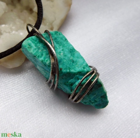 A medál Tiffany technikával készült krizokolla és ólommentes, ezüsttartalmú ón felhasználásával. A díszítés szintén saját készítésű, nem tartalmaz gyári elemeket. A fémrészt óezüstre patináztam és lelakkoztam, hogy sokáig szép maradjon.