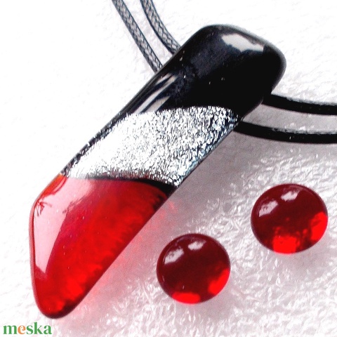 - Anyaga: dichroic üveg, ékszer szerelék, bőrszál, viaszolt szál