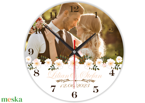 Ünnepeld meg az élet legszebb pillanatait egyedi és személyre szabott faliórával! Legyen az esküvő, aranylakodalom, ballagás vagy bármilyen más különleges alkalom, ez a 30 cm átmérőjű MDF alapú falióra tökéletes választás a megemlékezésre és az emlékek megőrzésére.