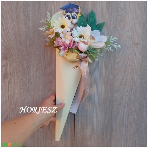 Virág csokor tölcsérben ballagásra