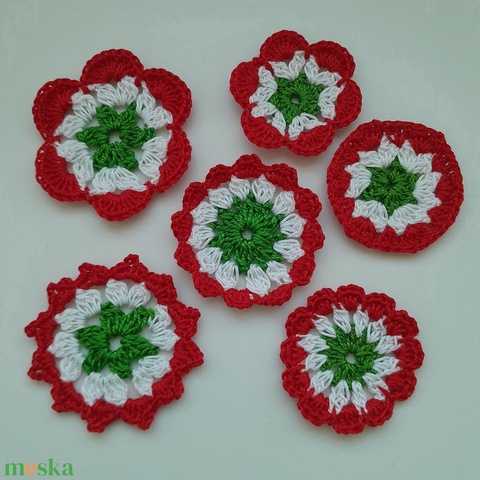 Nemzeti színű horgolt dísz, kokárda - 6 db / csomag