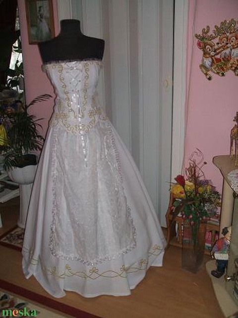 Menyasszonyi, menyecske, népművészeti ruha, magyaros.
