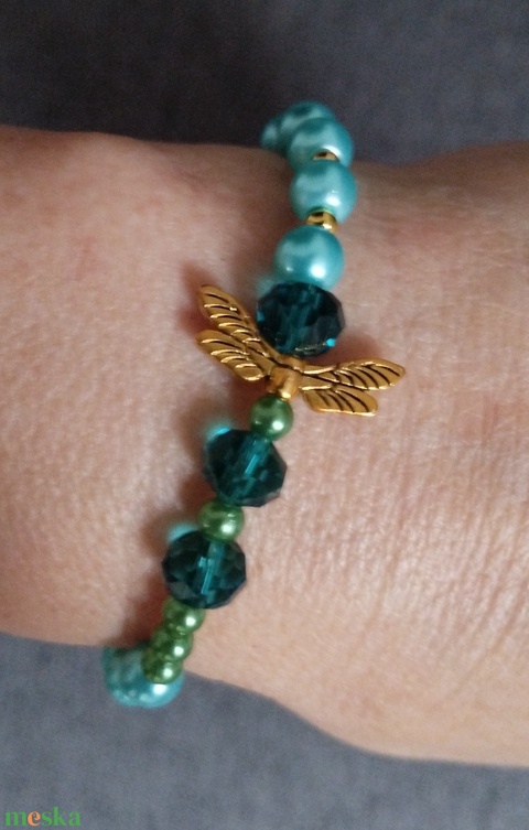 Szitakötős üveg gyöngy karkötő kerámia szívvel